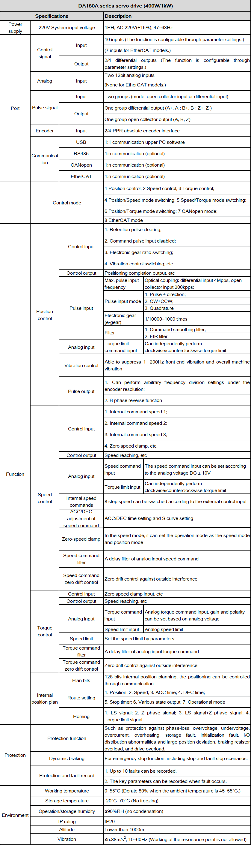 1. High speed response:with a response frequency up to 2.0kHz, DA180A can significantly improve processing speed, shorten setting time, and maximize mechanical performance