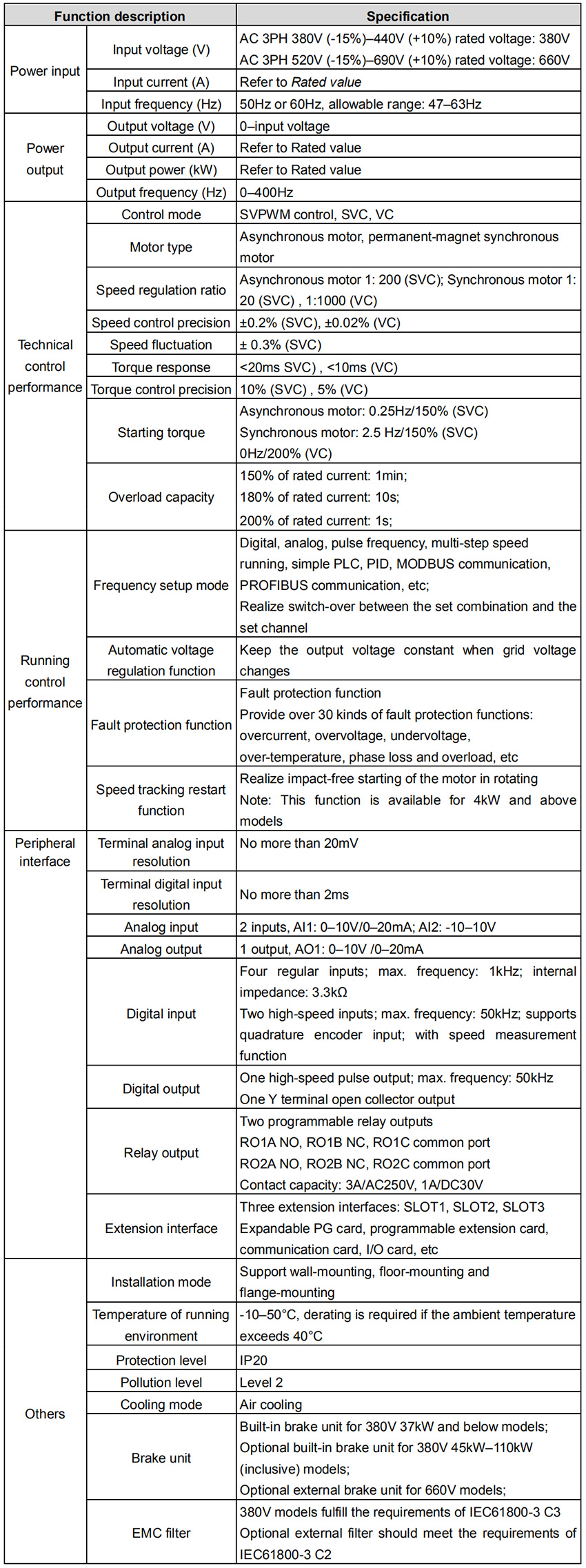 45~110kw: Optional built-in braking unit.
