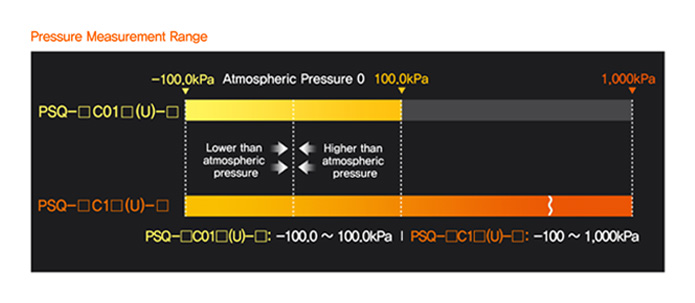 - Measurement range : -100.0 to 100.0 kPa /-100 to 1000 kPa (Pneumatic type : compound pressure, Fluid type : sealed gauge pressure)